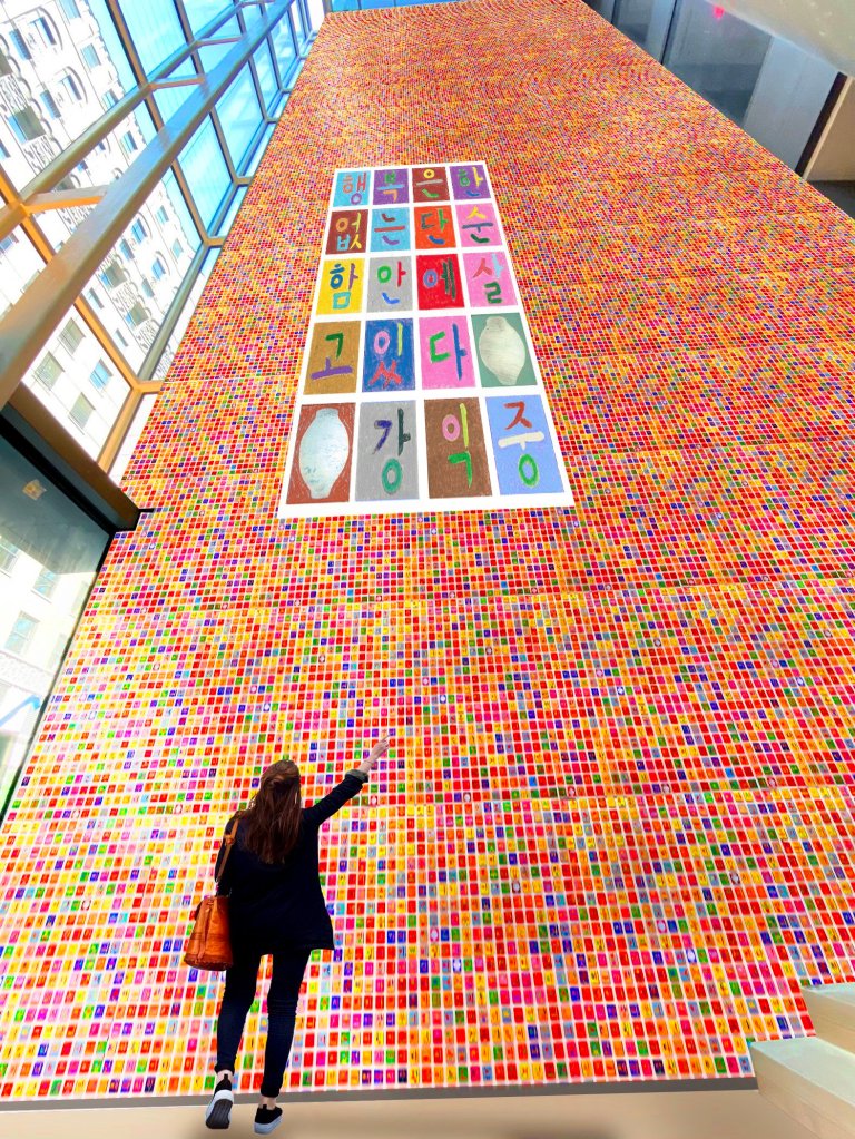 Ik-Joong Kang lidera uma campanha global, criando o primeiro “Hangeul Wall” do mundo, que será revelado do dia 26 de setembro a 07 de novembro de 2024, no Korean Cultural Center New York. Medindo 26 x 72 pés (8 x 22 metros) e composto por 20.000 peças Hangeul, conecta a sabedoria e as experiências de cidadãos globais.